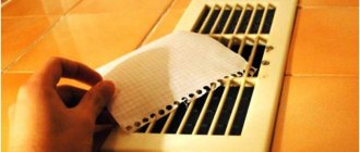 First, we bring a strip of newsprint 15-20 cm long and 2-3 cm wide to the existing ventilation vents at a distance of 5-7 cm from the hole. With proper ventilation, the end of the strip should touch the cut of the vent or be drawn into it.