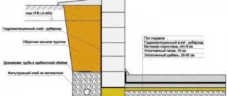 To do this, a trench is dug around the perimeter of the house, which will be much deeper in depth than the foundation. The issue of soils, groundwater drainage is resolved, backfilling is done with bulk and then the concrete solution is poured in accordance with the technology.