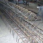 Если вы строите кирпичный дом, или здание из шлакобетона, и при этом пролет в здании превышает три метра, лучше использовать железобетонные балки. Монтировать их нужно с шагом примерно в 140 сантиметров и соединять с помощью арматуры. При длине пролетов до 6 м подойдет ребристая конструкция, которая обеспечит ровный потолок в доме. В такой конструкции дистанция между ее деталями находится в рамках 50-100 сантиметров.