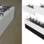 Conceived as a geological formation that rises above a flat landscape, this UK home features a unique pitched staircase roof lined with flint tiles. Such modern architecture contrasts and at the same time complements the natural environment due to the naturalness of its forms and shade transitions from dark gray to whitish-smoky.