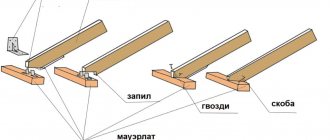 I attach the rafter to the Mauerlat in the following way: I make a special cut at the junction. It has such a shape that at the connection node its plane rests against the horizontal plane of the Mauerlat.