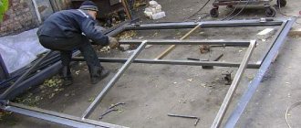 The most convenient way is assembly on a special assembly table in a workshop for the production of metal structures. In the site conditions, several blocks (beams) can be placed horizontally as a working surface, or the frame can be welded vertically.