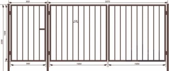 The main condition for long and reliable operation of the gate is compliance with the fastening system, current loads and compliance with installation technology. To draw up a drawing, measurements are taken. The canvas itself is usually made according to the width of the opening plus a few cm for the side rebates. The height is determined individually, taking into account the size of the fence and the material with which the frame will be sheathed. Usually it is 1.9-2.2 m.