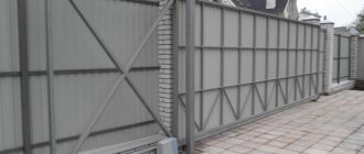 Installation of hanging or rail gates involves installing a guide on the posts at the top or bottom and attaching the roller mechanism. It is more difficult to manufacture cantilever gates, the design of which consists of a working leaf and a shank. The current forces in them are distributed in such a way that the wind loads are absorbed by the fence supports, and the consoles pulled out by the weight are taken by the platform with a separate foundation.