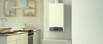 According to MDS 41.2-2000, boilers with a power of up to 60 kW are allowed to be installed in the kitchen. Gas service workers can often refer to other regulations that indicate a maximum permissible power of 35 kW, so before installing a 35-60 kW boiler, consult your local gas service. Only the power of heating equipment is taken into account; other gas appliances are not taken into account. Otherwise, in addition to the above requirements for a separate room, there are some differences when placed in the kitchen: