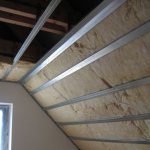 По уложенным балкам сооружается черновой потолок из досок или щитов, свободное пространство закладывается утепляющим материалом. Потолок обшивается гипсокартоном, который обеспечивает дополнительную пожаробезопасность. Перекрытие второго этажа делается из балок, поверх которых укладываются лаги, затем сооружается настил. Его можно использовать и как чистовой пол, и как основу под дополнительное покрытие.