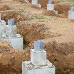 - Далее вы монтируете колонку на анкерные болты, вбивая их сквозь проушины и закручивая до упора.