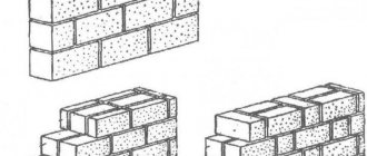 Чтобы избежать этого, укладку углов после каждого второго ряда контролируют строительным уровнем и угольником. Армирование таких участков выполняется перпендикулярно уложенными полосами сетки с перехлестом в семь – восемь сантиметров, либо металлическими стержнями, выгнутыми под необходимый угол и заведенными на смежный край на десять сантиметров.