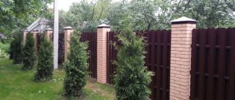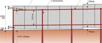 - Вид заполнения секций. Нагрузка на столбы значительно различается, будет ли это легкий воздухопроницаемый штакетник, сплошной профнастил или тяжелый кирпич.