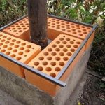 - При выкладывании можно применять разный кирпич. Выбор зависит от монтажа. Может быть применен как цельный кирпич, так и его половинки. При кладке рекомендуется не забывать о вентиляционных отверстиях, они должны быть на расстоянии 2 метров друг от друга.