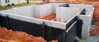 - Если глубина превышает 70 см, вдоль стенок устанавливают боковые щиты, поддерживаемые распорками, которые одновременно могут служить и элементами опалубки.